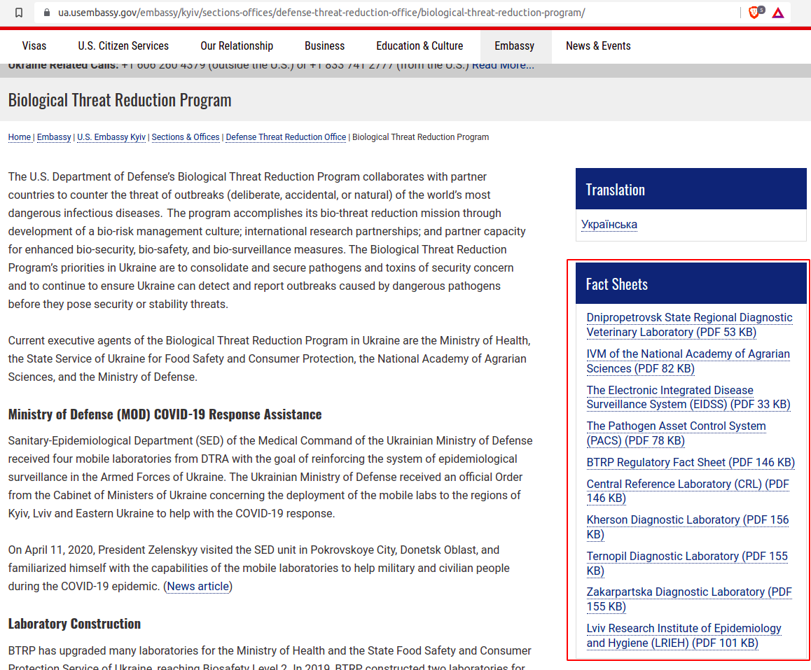 Plusieurs documents disponibles sur le site de l’ambassade des US à Kiev, detaillant le financement de laboratoires habilités à manipuler des agents pathogènes ne sont plus accessibles, mais heureusement, Internet a de la mémoire.
