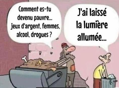 Un illuminé nous a donné une série de leçons sur les économies d’énergie. Nous prenant pour des débiles mentaux profonds ou des séniles précoces, il nous a expliqué qu’en coupant toutes les veilleuses de nos appareils électriques, nous pouvions économiser 15% de notre consommation. Faux, nous économiserions alors 2 à 3%. Le même nous a expliqué qu’en remplaçant nos lampes traditionnelles par des lampes à économie d’énergie, nous pouvions économiser 30 à 35% d’énergie. Faux c’est de 4 à 5 % que l’on peut économiser. Pour couronner le tout, une brillante journaliste de TF1 (quelle chaîne instructive !) a pris le relais et fait le total des économies pouvant être réalisées selon ces critères éclairés : 15 % sur les veilleuses + 35% sur les lampes = 50% d’économie d’énergie. Elle n’est pas allée jusqu’à le dire, mais nous qui sommes particulièrement débiles, avons deviné que demain, si nous suivions scrupuleusement ces instructions, on pouvait arrêter la moitié des centrales électriques.
