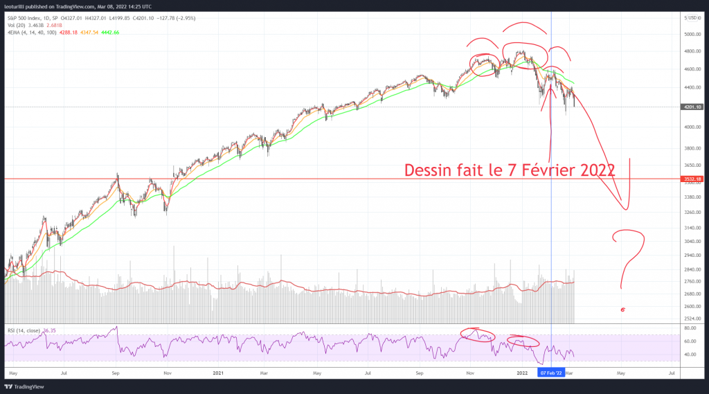 Et la charte des 500 plus grandes entreprises aux USA qui sont un bon indicateur de l’économie occidentale continue sa chute.