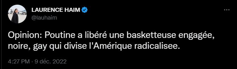 Brittney Griner, une basketteuse américaine qui a été prise en possession de drogues en Russie. En 2020, elle a juré de ne pas se présenter à l’hymne national durant toute la saison, ceci en rapport avec l’affaire George Floyd.