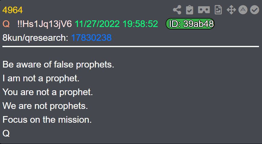 La référence est claire, et elle est faite d’une manière discrète, mais pas trop non plus… Cela dit, en regardant tout ce que Elon Musk fait, et en évitant de se focaliser sur l’aide qu’il apporte, on remarque une sorte de double jeu où il dit quelque chose et il fait l’opposé. De ce fait, on vous rappelle aussi le post de Q 4964 qui dit :