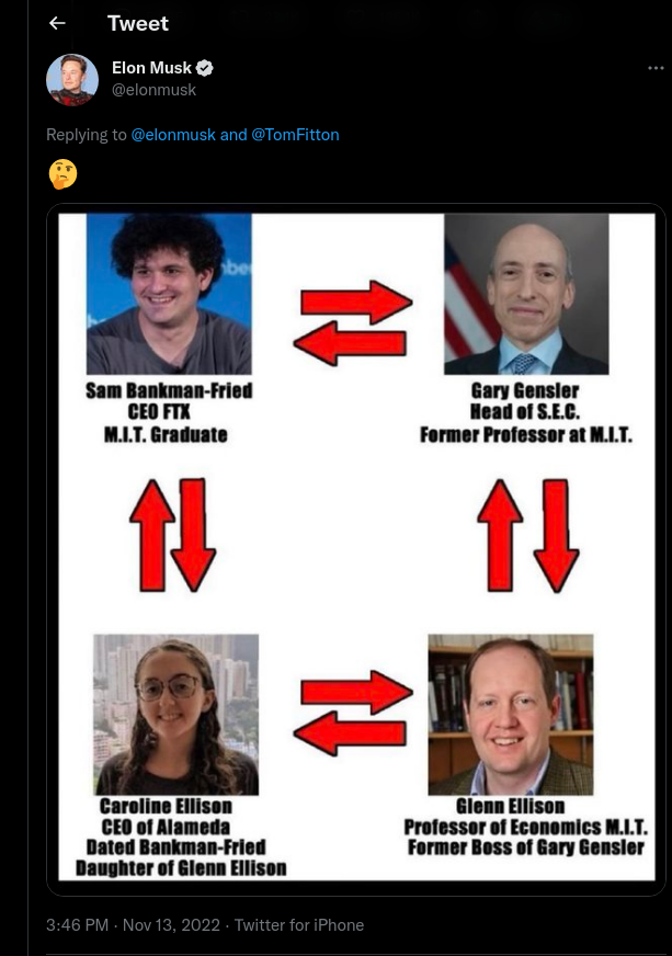 FTX Ă©tait faussement perçue comme l’une des entreprises les plus stables et les plus respectĂ©es de l’industrie cryptographique jusqu’Ă ce qu’elle soit plongĂ©e dans la crise en 2022. En novembre 2022, un article de CoinDesk a dĂ©clarĂ© que la sociĂ©tĂ© apparentĂ©e Alameda Research avait une partie importante de ses actifs dans le jeton natif de FTX, le FTT. Ă la suite de cette rĂ©vĂ©lation, le PDG de la bourse concurrente Binance, Changpeng Zhao, a annoncĂ© que Binance allait vendre ses avoirs en FTT. Il s’en est suivi un effondrement du prix du FTT et un effondrement rapide de FTX.
