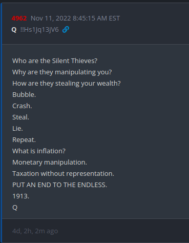 « Nous travaillons dans les coulissesâŠ. ». Vous allez vous faire prendre. Nous avons des yeux, des oreilles, et des avocats partout. Et nos forces de l’ordre sont sur le coupâŠ. Nous poursuivons les personnes qui ont volĂ© nos votesâŠ. nous vous surveillons, vous ĂȘtes surveillĂ©s, et vous allez payer trĂšs cher. »