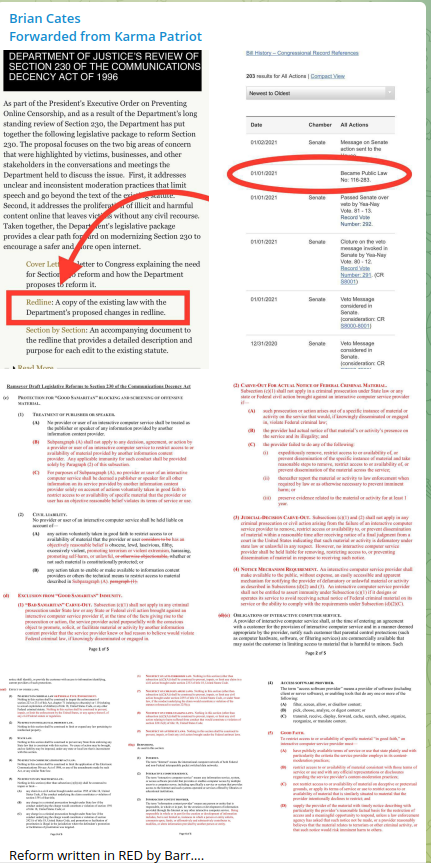 On peut voir sur ce site que les modifications proposées par Bill Barr ne font pas partie de la loi actuellement en vigueur aux US