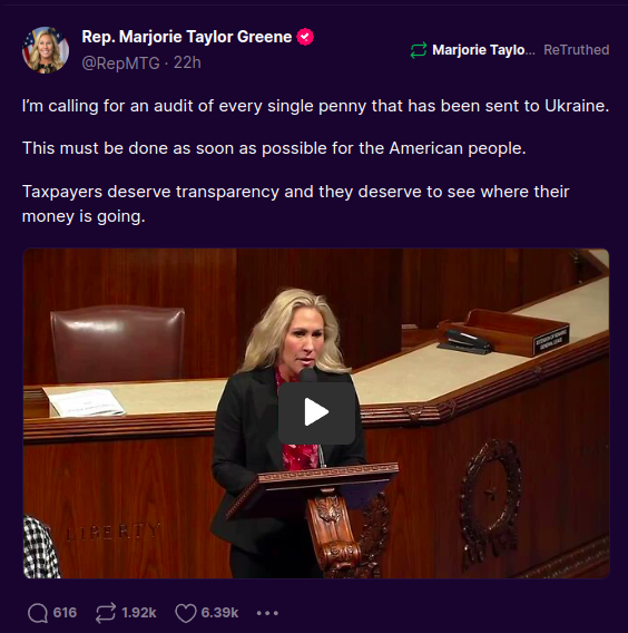 Je demande un audit de chaque centime qui a été envoyé en Ukraine.