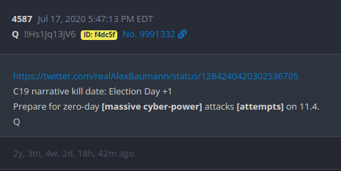 Finalement cette déclaration de Trump ne change pas grand chose à la situation. Le monde est toujours sous les assauts du Deep State. Le plan continue son cours… lentement… mais sûrement… mais lentement. L’ennemi est en pleine campagne de démoralisation (Election volée pour la deuxième fois, Vaguelette rouge, Infiltrés de toutes parts qui pousse le mouvement Patriote à l’abandon…). Cette campagne n’existe que parce que le DS a largement conscience de la menace existentielle du mouvement Patriote.