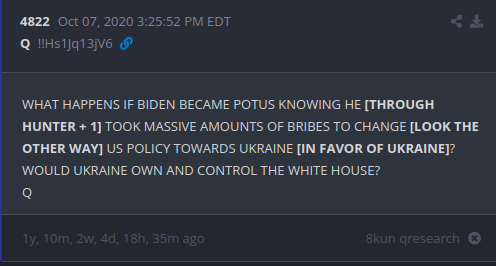 QUE SE PASSE-T-IL SI BIDEN DEVIENT POTUS EN SACHANT QU’IL [PAR L’INTERMÉDIAIRE DE HUNTER + 1] A REÇU DES MONTANTS MASSIFS DE POTS-DE-VIN POUR CHANGER [DÉTOURNER LE REGARD] LA POLITIQUE AMÉRICAINE ENVERS L’UKRAINE [EN FAVEUR DE L’UKRAINE] ?