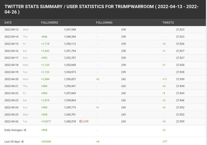 Déclaration de Donald J. Trump, 45e président des États-Unis d’Amérique 29/04/2022 :