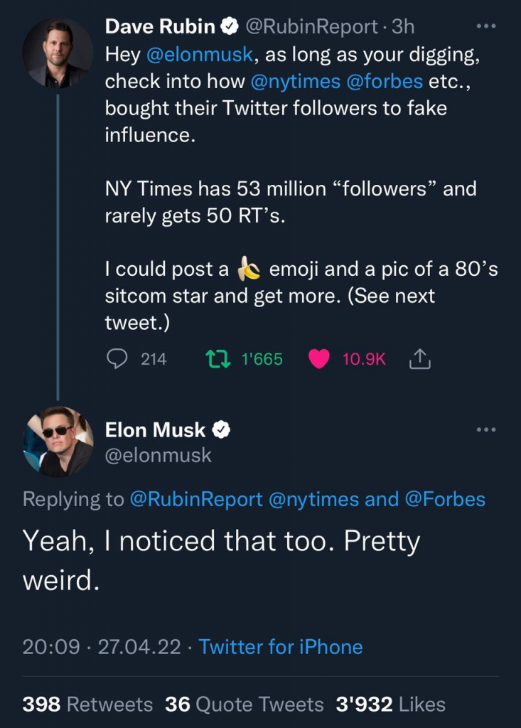 Hey @elonmusk tant que tu creuses, regarde comment le @nytimes @forbes etc., ont acheté leurs followers Twitter pour simuler leur influence.