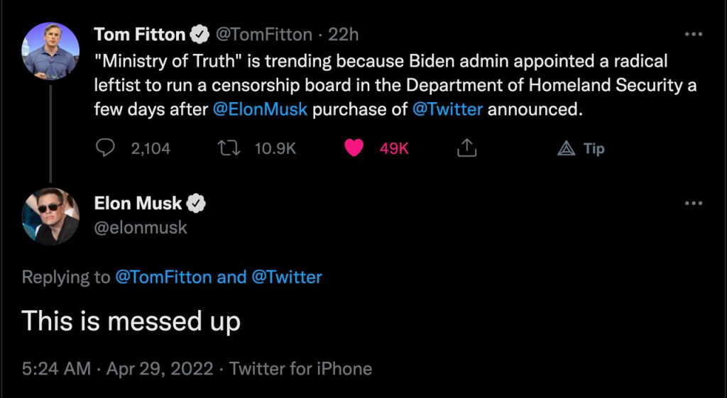 La Fédération internationale des journalistes (FIJ), plus grande organisation mondiale de la profession, a condamné le projet de rachat de Twitter par l’homme d’affaires Elon Musk, y voyant une menace pour la liberté de la presse.[…] La FIJ redoute également une moindre modération des contenus qui pourrait « augmenter la désinformation et menacer le journalisme de qualité ».