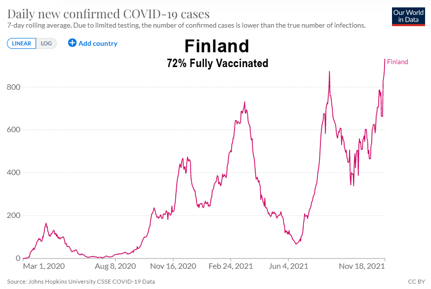 Quand l’objectif de la vaccination a-t-il cessé d’être la prévention de l’infection et de la transmission ? La protection contre l’infection et la transmission n’a-t-elle pas toujours été l’objectif d’autres programmes de vaccination tels que la polio, la rougeole et les oreillons ? Prenons donc un moment pour examiner comment ces vaccins contre le Covid ont entraîné une augmentation record des cas dans 40 endroits du monde, en commençant par les pays scandinaves :