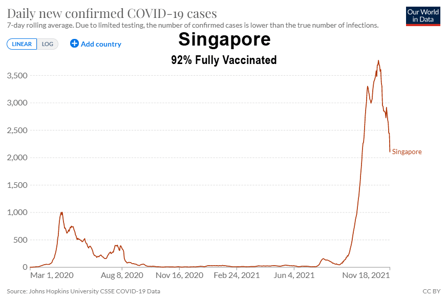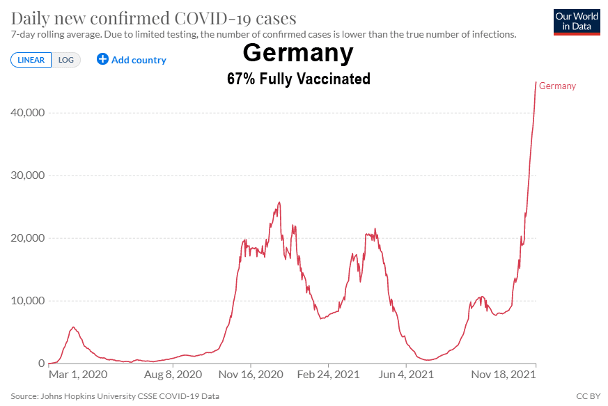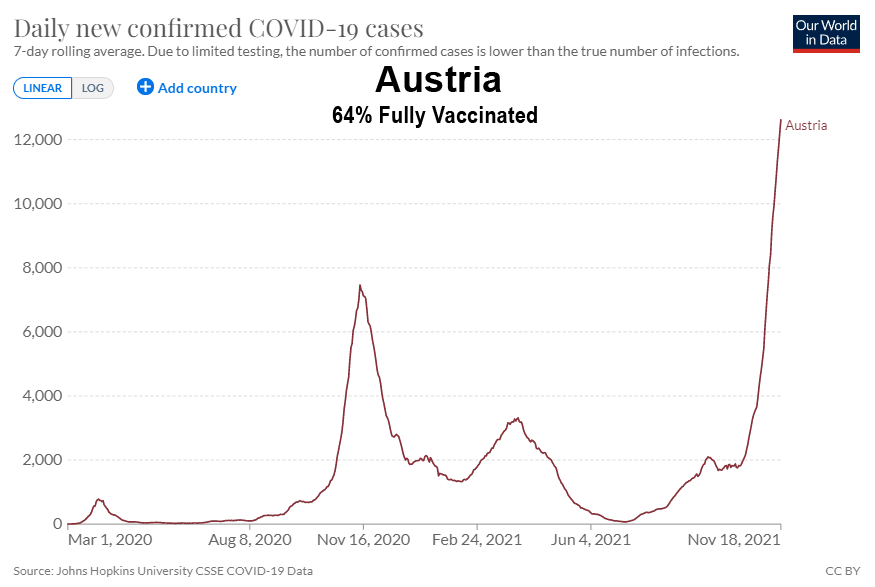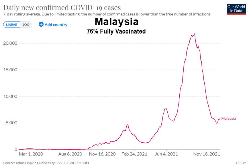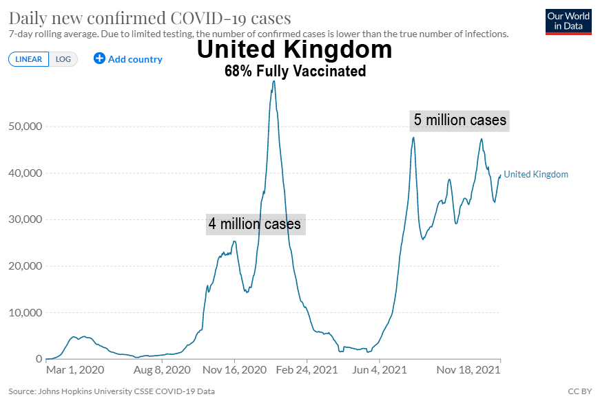 L’un des aspects les plus surréalistes de la campagne mondiale visant à forcer le monde à adopter ces vaccins expérimentaux à ARNm est le nombre impressionnant d’endroits où le nombre de cas de Covid-19 a atteint de nouveaux sommets après l’introduction de ces vaccins n’empêchant pas la transmission. Le but de la vaccination n’était-il pas de ralentir la propagation ?