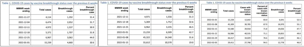 • Rapport du 10 février : 52,5 % des cas étaient des personnes vaccinées.