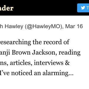 @HawleyMO: I’ve been researching the record of Judge Ketanji Brown Jackson, reading her opinions, articles, interviews & speeches. I’ve noticed an alarming pattern when it comes to Judge Jackson’s treatment of sex o...…
