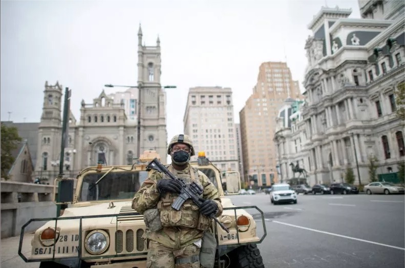 Election 2020. National Guard on patrol in downtown Philadelphia, Pennsylvania. pic.twitter.com/pw3ubRiRdh