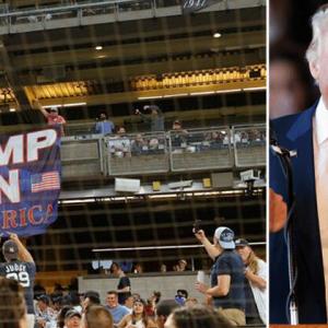 Baseball fans at Yankee stadium drop a massive "Trump won" sign