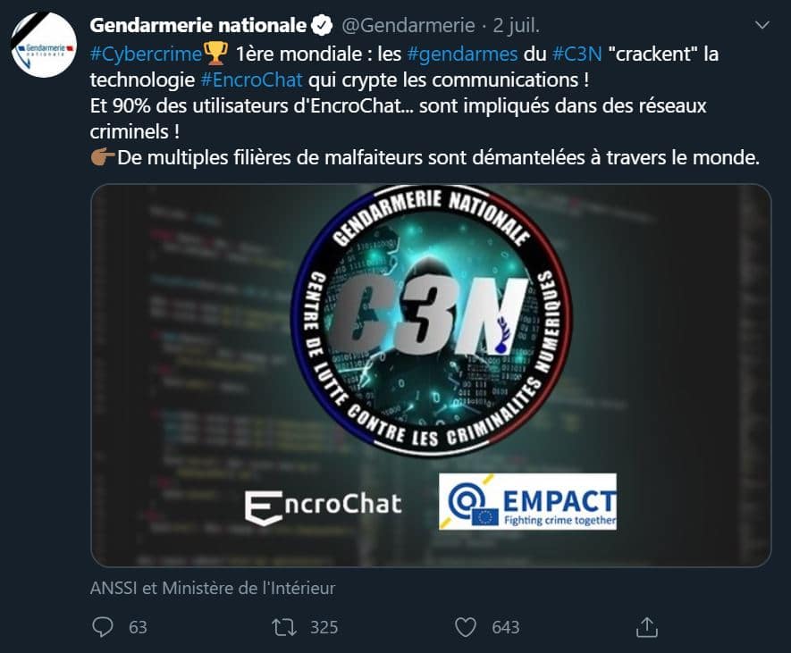 Ceci est un des plus grands coups contre le crime organisé dans l’histoire de la Police en Europe. C’est une excellente nouvelle car il ne s’agit pas de l’arrestation d’un seul de ces réseaux. Il s’agit du déchiffrage de l’outil préféré par des criminels de haut calibre. 100 millions de messages interceptés et des milliers de comptes utilisateurs (criminels) vont conduire inévitablement à des arrestations plus importantes. Cela a déjà commencé.