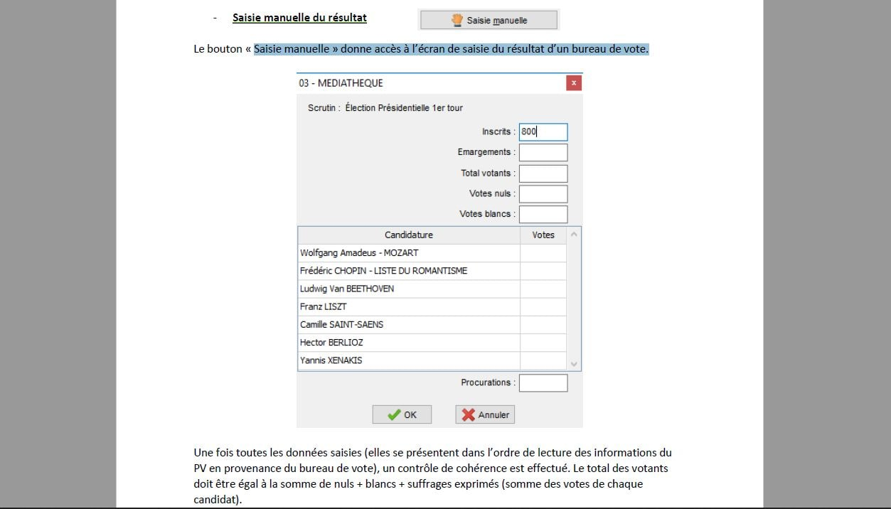 Mais on peut aussi METTRE DES VOTES A LA MAIN DANS LE SYSTEME: « Saisie manuelle des résultats de vote », doc9 pg6.