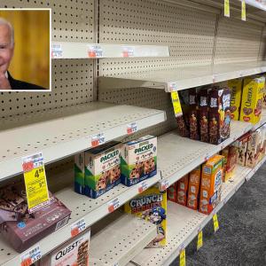 « Je viens de faire mes courses… encore une fois… merci #JoeLesRayonsVides. J’aime vraiment devoir y aller tous les jours maintenant pour trouver ce qui ne prenait qu’un seul voyage auparavant », a écrit un compte, accompagné d’une photo d’étagères presque vides dans une épicerie.