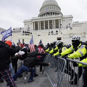 Des manifestants affrontent la police au Capitole des États-Unis à Washington, le 6 janvier 2021. (Julio Cortez/AP Photo)