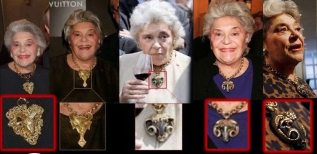 Pourquoi le baron Jacob de Rothschild se fait prendre en photo avec Marina Abrahamovic, connue pour son art clairement satanique ? Pourquoi poser devant ce tableau ? Sont-ils en train d’envoyer un message ? Ou c’est encore un malheureux hasard ? Et comment expliquer l’étrange choix des bijoux de Philippine de Rothschild ?