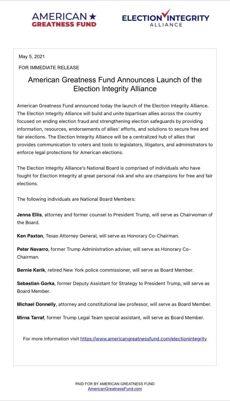 L’American Greatness Fund annonce le lancement de l’Election Integrity Alliance