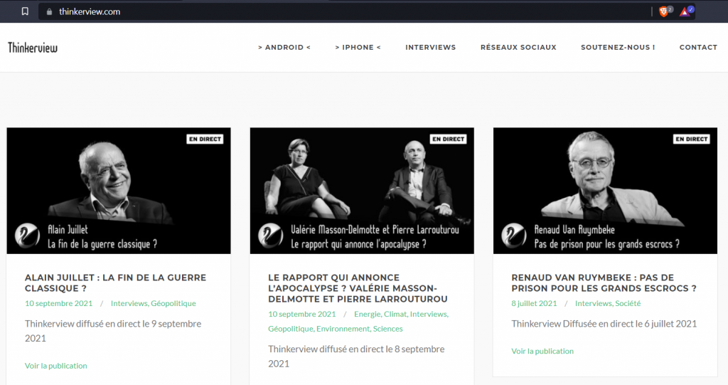 Quand nos vidéos ont commencé à avoir un peu de visibilité, nous avons subi la même censure qu’on aurait reçu en Albanie en tant qu’opposition. On est devenus les »complotistes », »antisémites », »climatosceptiques », on est donc vite devenus les »dossiers noirs » en France. Dans un souci de crédibilité et afin de pouvoir continuer à creuser plus en profondeur, j’ai lancé Thinkerview en parallèle après avoir fait la rencontre de celui dont on ne dit pas le nom, allias Sky.