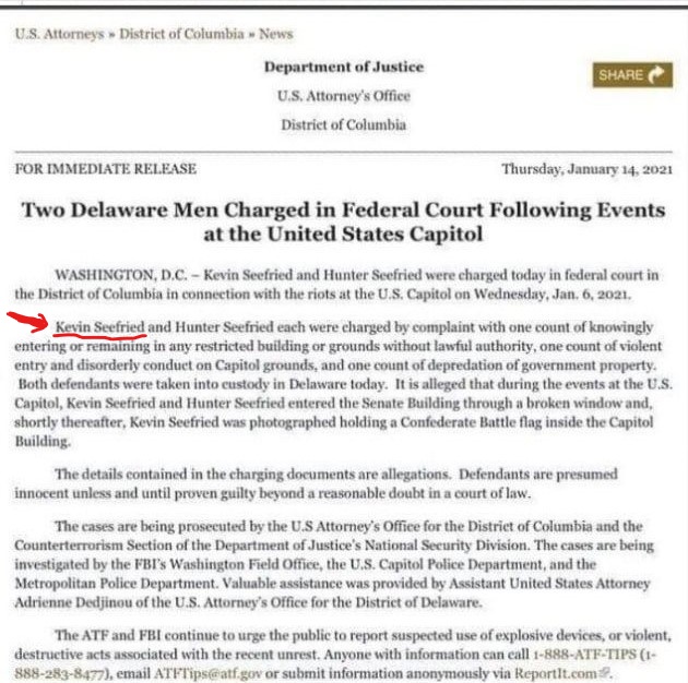 Alors évidemment, les factcheckers ont sauté à l’occasion pour discréditer cette nouvelle en utilisant le fait que dans le document ci-dessus, il y a marqué que Kevin Seefried est né le 1986 et ça ne peut pas être la même personne car le Kevin du 6 janvier a 51 ans. Cela dit, eux mêmes trouvent étrange le fait que son année de naissance est précisée de cette manière dans ce document, ce qui n’est pas le cas pour tout le monde et même les factcheckers finissent avec la conclusion « manque de preuves ». Le fait est que lui et son frère Hunter son tous les deux du Delaware et nous pouvons les trouver asses facilement dans ce registre : https://voterrecords.com/