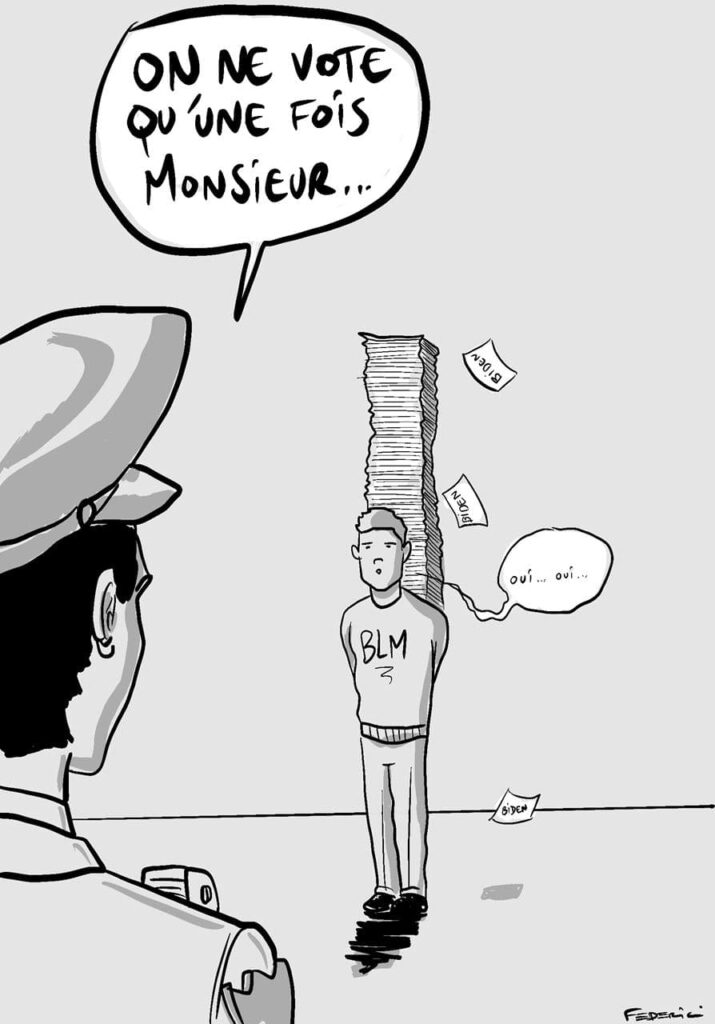 EN CE MOMENT MÊME – Les observateurs du scrutin tentent de pénétrer dans la zone de dépouillement des bulletins de vote du Centre TCF pendant que les bulletins du comté de Wayne sont comptés. La tension monte à #Detroit.