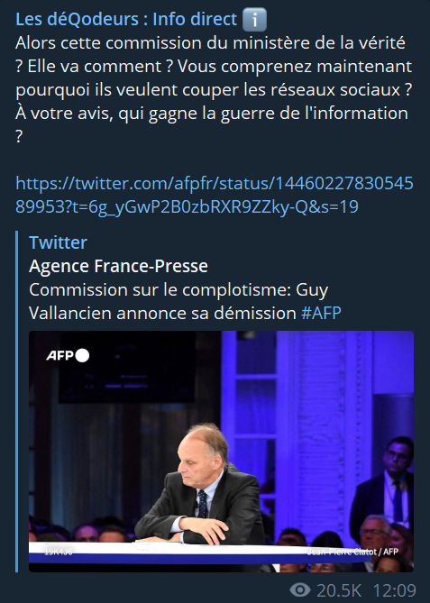 Et Twitter a réagit en essayant de passer ce post de l’AFP à la place :