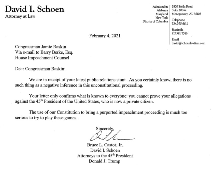 La réponse des avocats de Trump – Trump ne participera pas à ce « jeu » anticonstitutionnel.