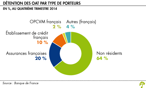 Les non-résidents sont les principaux détenteurs de la dette publique française. Pour l’essentiel il s’agit d’investisseurs institutionnels (fonds de pensions et fonds d’assurance notamment), mais aussi de fonds d’investissements souverains, de banques, voire de fonds spéculatifs. Il n’existe pas d’information publique détaillée à ce sujet.