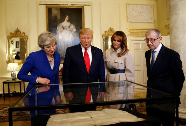 Trump, en visite officielle de trois jours à Londres avec sa femme Melania, a vu le document avec May et son mari Philip avant les entretiens à sa résidence de Downing Street.