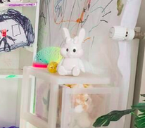 Ce petit lapin blanc a très certainement une signification puisqu’on le retrouve, bien en vue dans trois des quatre clichés. On pense immédiatement à la phrase « Suivez le lapin blanc », tirée de « Alice au pays des merveilles » et popularisée par le film Matrix