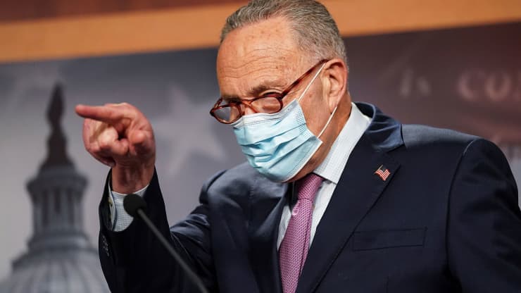 - Le sénateur Chuck Schumer, leader de la minorité D-N.Y., a réitéré lundi son appel au président élu Biden pour qu’il annule 50 000 dollars de prêts étudiants pour chaque emprunteur.