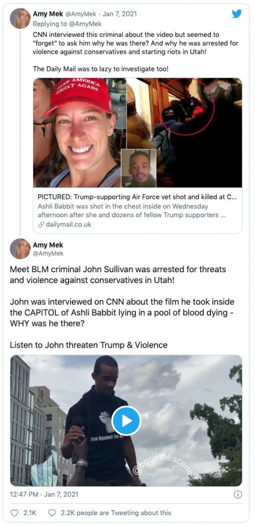 Rencontrez le criminel du BLM John Sullivan, arrêté pour menaces et violences contre les conservateurs dans l’Utah !John a été interviewé sur CNN à propos du film qu’il a réalisé dans le CAPITOL d’Ashli Babbit gisant dans une mare de sang en train de mourir – POURQUOI était-il là ?